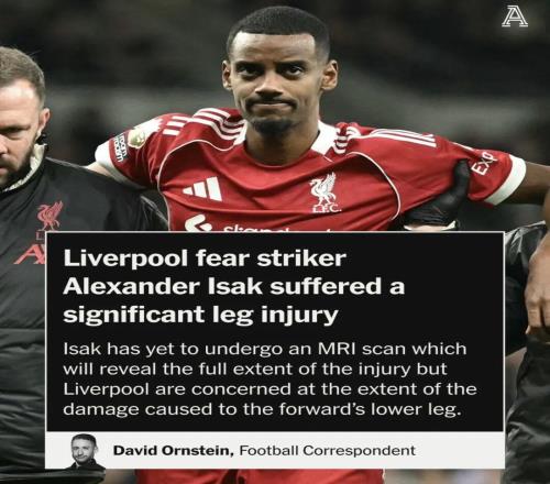 TA:利物浦初步怀疑伊萨克受伤的部位是小腿而不是膝盖