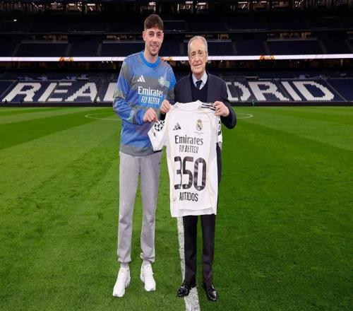 达成皇马生涯150场里程碑,楚阿梅尼获赠纪念球衣