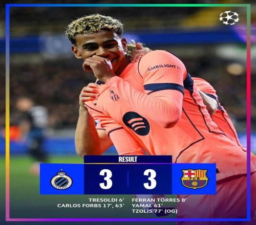 布鲁日3-3巴萨