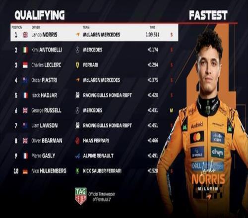 第1-第5:诺里斯、安东内利、勒克莱尔、皮亚斯特里、哈贾尔