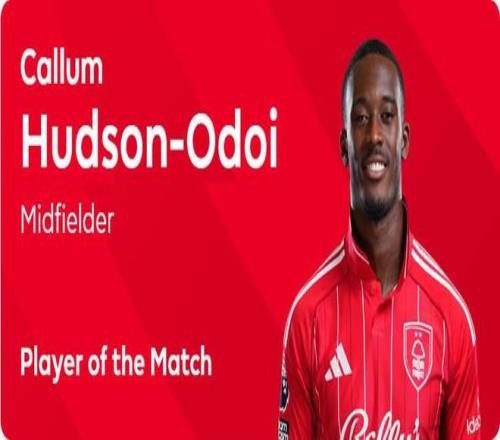 在周日晚进行的英超第16轮比赛中,诺丁汉森林主场3-0击败热刺,赛后,奥多伊被英超官方评为本场比赛全场最佳球员。