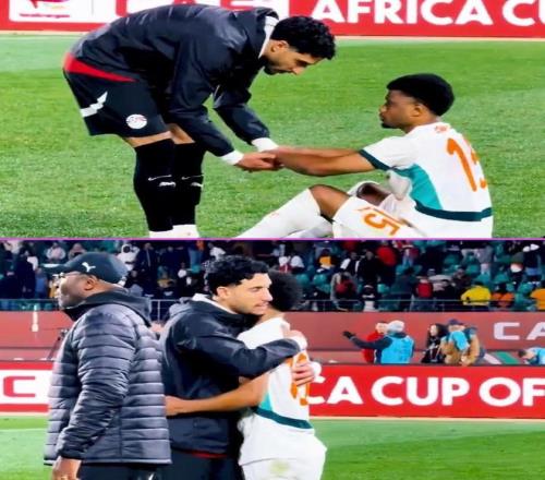 本场比赛,埃及队3-2击败科特迪瓦队,现场的照片当中可以看到,比赛结束后,马尔穆什是第一个阿马德-迪亚洛结束非洲杯征程后安慰他的球员。