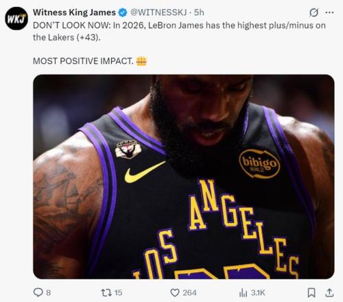 进入2026年后,41岁的詹姆斯正负值+43是湖人第一,此前不是很多人说勒布朗正负值差吗?如今正负值都是最高的,这怎么说?